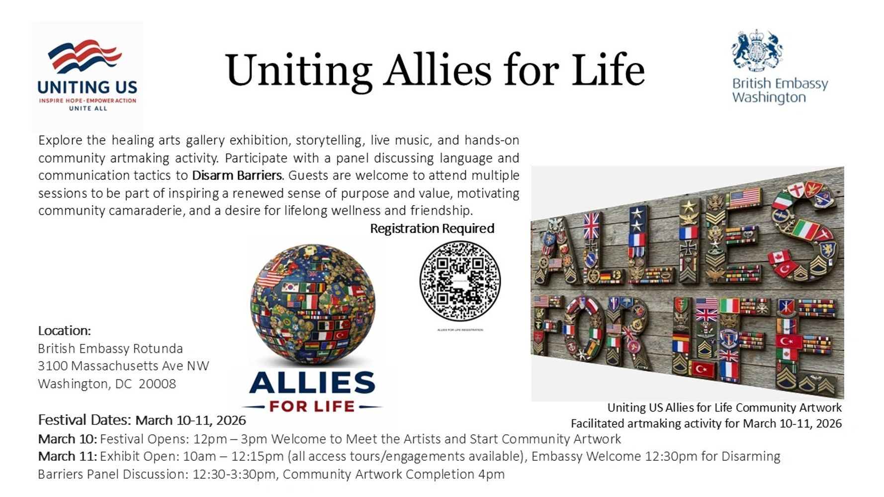 Uniting US Participants live across the US and around the world! Program locations vary and include (but not limited to) personal residences, community centers, professional galleries, colleges and universities, high profile public locations, international and national airports, foreign embassies, Walter Reed National Military Medical Center, Department of Veterans Affairs, and national monuments like Arlington National Cemetary and the Library of Congress!
